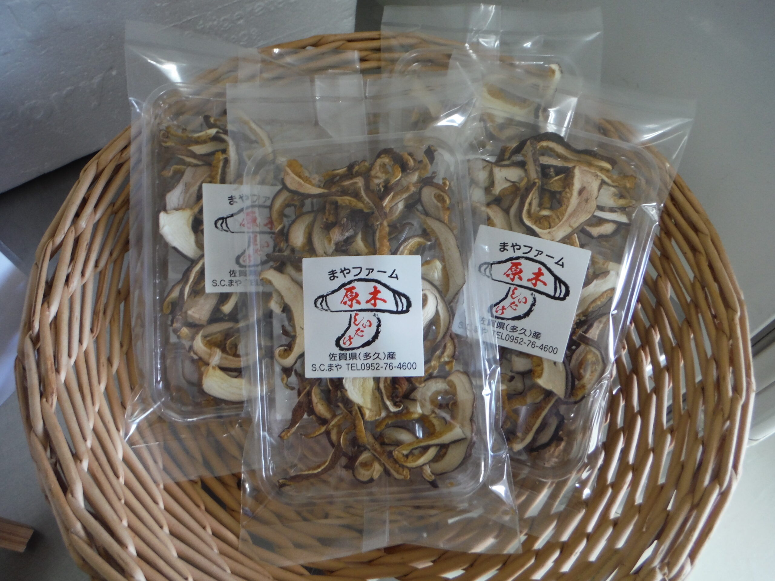 まやで栽培した椎茸を乾燥した「干ししいたけ」の販売を始めました。